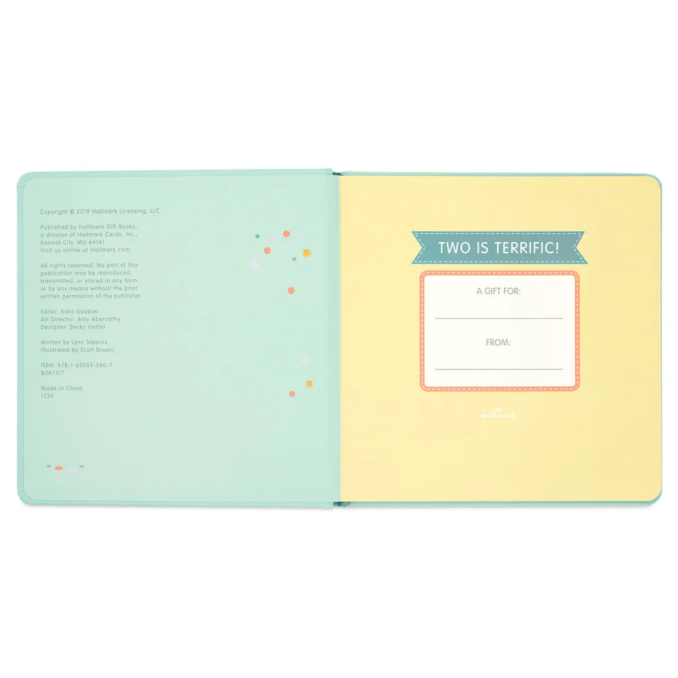 Mark a toddler's milestone birthday with this book's rhyming celebration of a 2-year-old. Its message looks back through the best moments of the first two years of life and looks forward to the joys, changes and sentimental journey of the days ahead. "Two Is Terrific!" makes a sweet gift idea from a grandma, godmother or family member who's far away.
