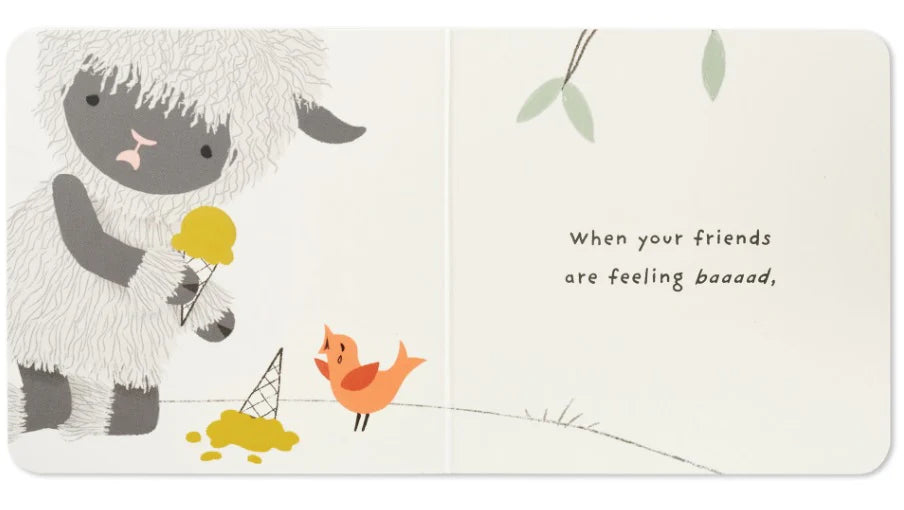Little ones will love getting their hands on this crazy-cute plush friend with fun hair and a message of care! This special, mop-topped black and white Highland sheep stuffed animal comes packaged with a 'You Are Kind' board book filled with rhyming verse and words of encouragement.